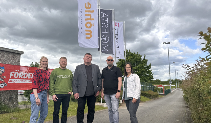 Die acht Meter hohen Fahnenmasten wurden durch die Löhner Unternehmen Moesta, Remmert sowie Möhle Schlafkultur zur Verfügung gestellt. Alexander Möhle von Moesta und Marcel Köhricht haben sie höchstpersönlich einbetoniert und aufgestellt. Die nötigen Erdarbeiten übernahm Alexander Möhle kurzerhand selbst. Dank Transbeton aus Löhne sorgen 1,5 qm Beton für den sicheren Stand.„Es ist großartig, wenn gerade Unternehmen aus der direkten Nachbarschafft Flagge zeigen“, so der Verein weiter. Mit knapp 200 Jugendlichen im Verein ist es ein wichtiges Ziel, auch zukünftig auf die Jugend zu setzen.