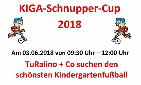 Unter dem Motto „TuRalino + Co suchen den schönsten Kindergartenfußball“ findet im Rahmen des Spatzenberg Cup am Finaltag, dem 03.06.2018, in der Zeit von 09:30-12:00 Uhr, der 2. KiGa-Schnupper-Cup bei TuRa Löhne statt.