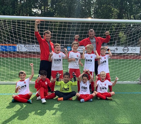 Es ist geschafft – am Sonntag , den 7.7.19 spielten die 2010er ihr letztes Turnier als F1 und hinterließen bei den Gegnern keinen schlechten Eindruck. Eingeladen wurde das TuRa-Team vom TUS Sennelager zu deren alljährlichen Sportwerbewoche, genauso wie 7 weitere F1 -Mannschaften. In dem Turnier wurde Jeder gegen Jeden gespielt und außer in dem letzten Spiel gegen den DJK/SSG Paderborn , welches 1:1 Unentschieden ausging, gewannen die Löhner alle Partien und gingen so, mit sagenhaften 19 Punkten aus 7 Spielen, als Sieger des Turnieres vom Platz . Sichtlich stolz präsentieren die Jungs Ihre Pokale und freuen sich nun auf eine wohlverdiente Sommerpause, um in der nächsten Saison als E2 wieder richtig Gas geben zu können.