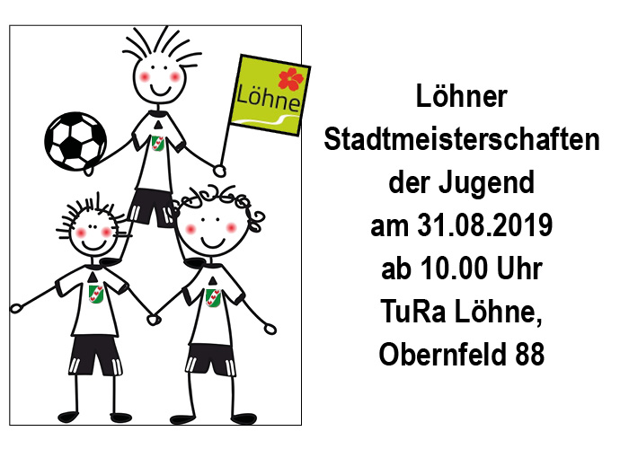 Am Samstag, 31.08.2019, ab 10.00 Uhr, finden am Obernfeld 88 auf der TuRa-Sportanlage die Jugend-Stadtmeisterschaften der Stadt Löhne statt.