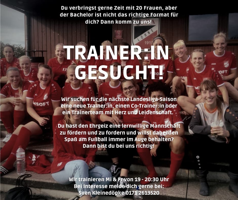 Wir suchen für die nächste Landesliga-Saison eine neue(n) Trainer(in), einen neue(n) Co-Trainer(in) oder ein Trainerteam mit Herz und Leidenschaft.