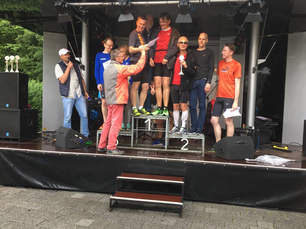 Im Laufe der zweiten 3 Stunden setzte sich sich der Zweikampf zwischen TuRa u. Phönix Bielefeld fort; gleichzeitig holte die Staffel der Friedrich-List-Schule mit großen Schritten auf. In der 29. Runde übernahm Phönix die Führung um dann in der 30. Runde einen Läufer einzusetzen, der dann mit 20 Minuten fast doppelt solange wie bei einer normalen Runde gebraucht hat. Durch die überraschende Schwäche des stärksten Konkurrenten konnte die TuRa-Staffel die Führung wieder übernehmen und bis Ablauf der 6 Stunden verteidigen. Am Ende hat unsere Staffel 32 Runden bzw. 71 km zurückgelegt und durfte verdient den Siegerpokal in Empfang nehmen.